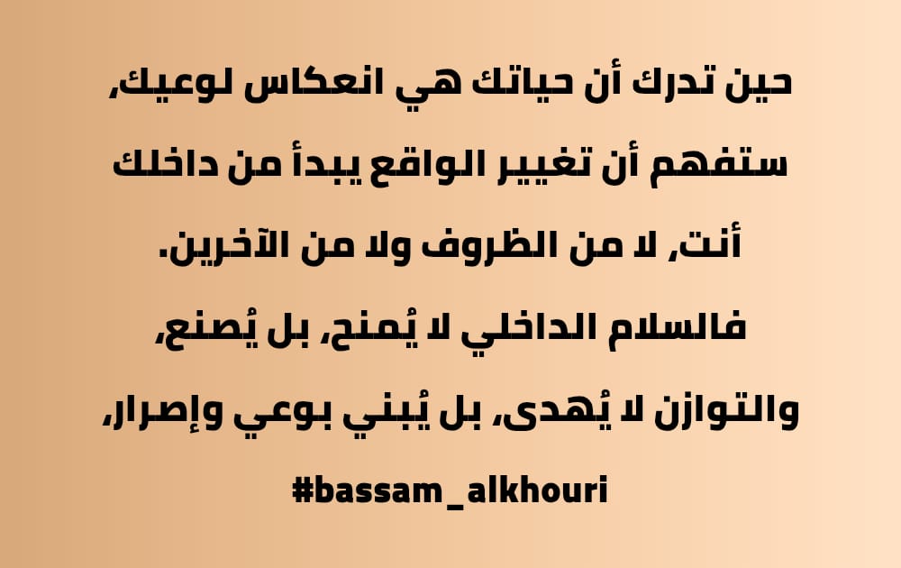 سيساعدك خبير تطوير الوعي الذاتي الأستاذ / بسام الخوري لتكتشف ذاتك وتفهمها وتتصالح معها مما يعيد تشكيل واقعك بوعيك الجديد .